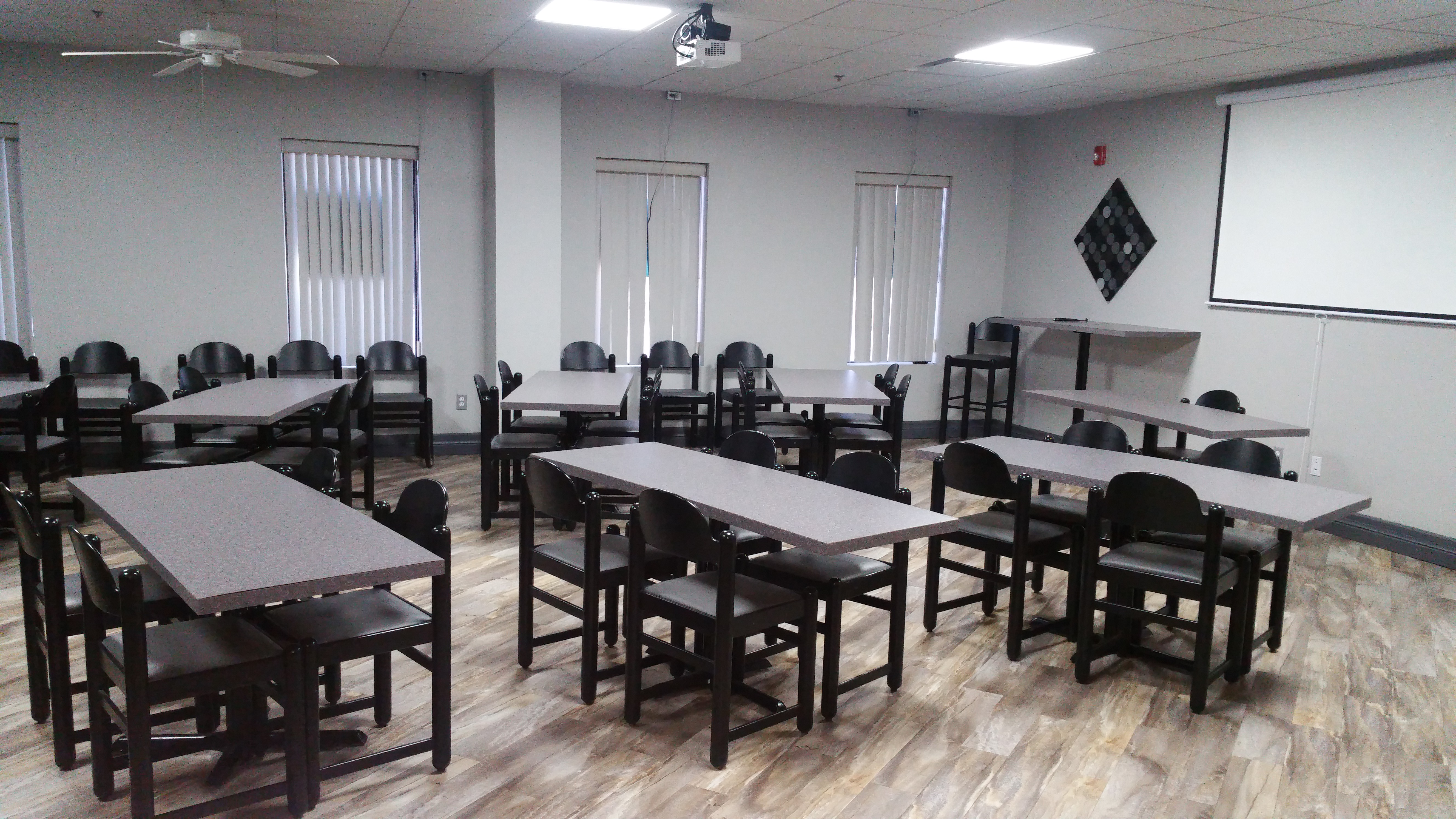 - Use of ceiling-mounted projector and projector screen